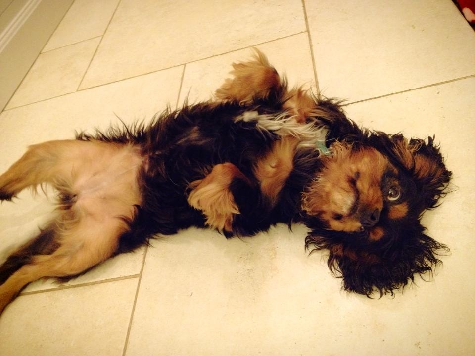ステイ先の犬、ミッチーは人間のご飯が大好き。